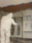 When the time comes to paint the cabinets and frames, the floors are covered and the room is sealed with plastic as to prevent dust or paint from spreading to the rest of your home.